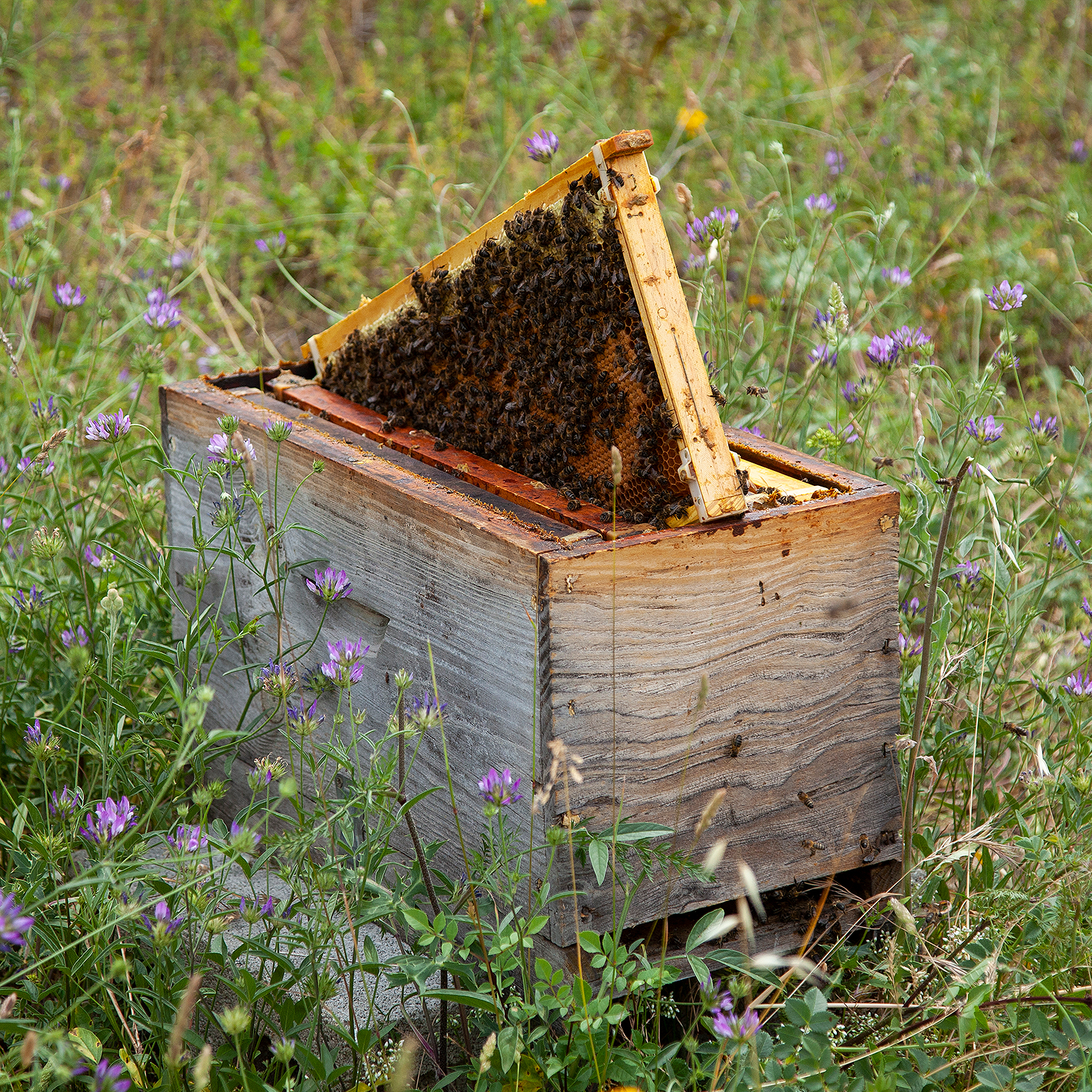 Un núcleo Langstroth de 5 cuadrados, de los cuales 3 tienen cría y 2 tienen polen y miel + una reina recién apareada, de al menos 35 días de edad y que haya incubado hasta el operculado.